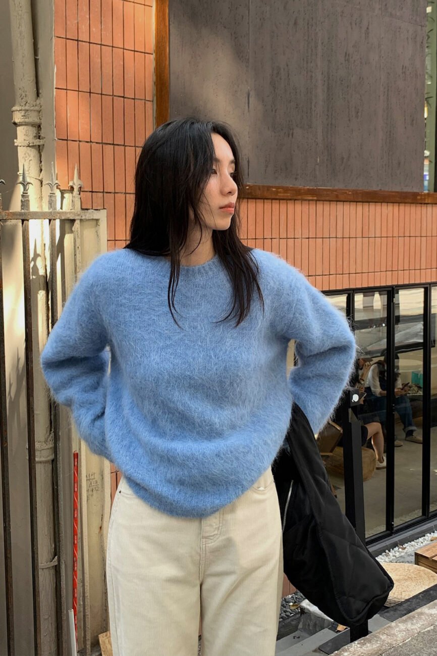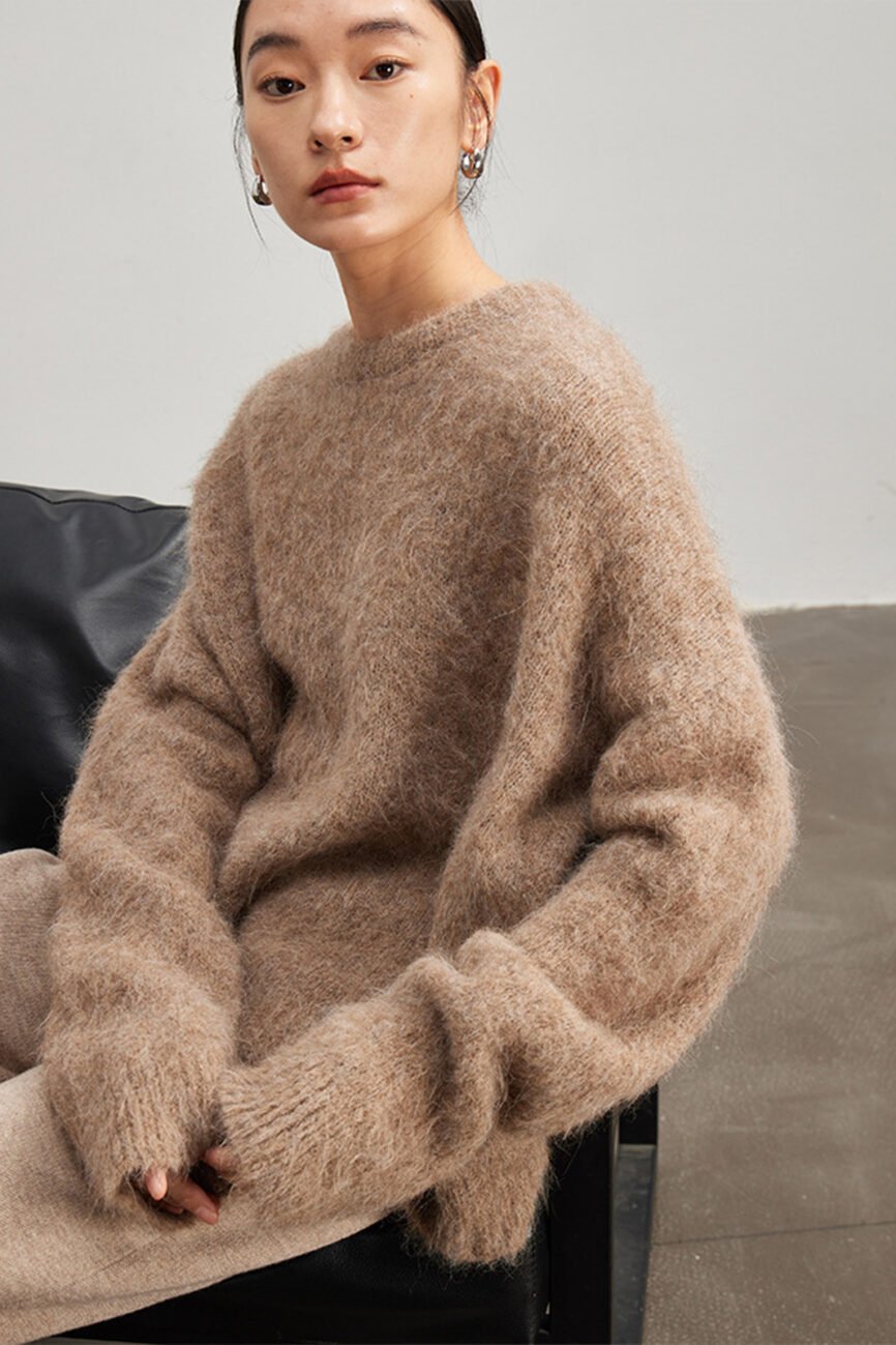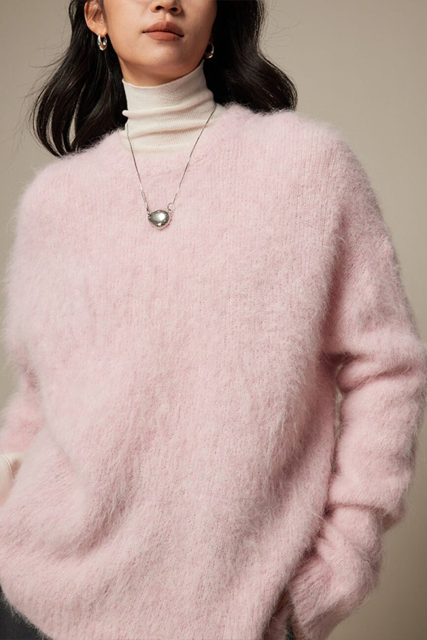 78% Alpaca Brushed Long-pile Pink Sweater FL2165