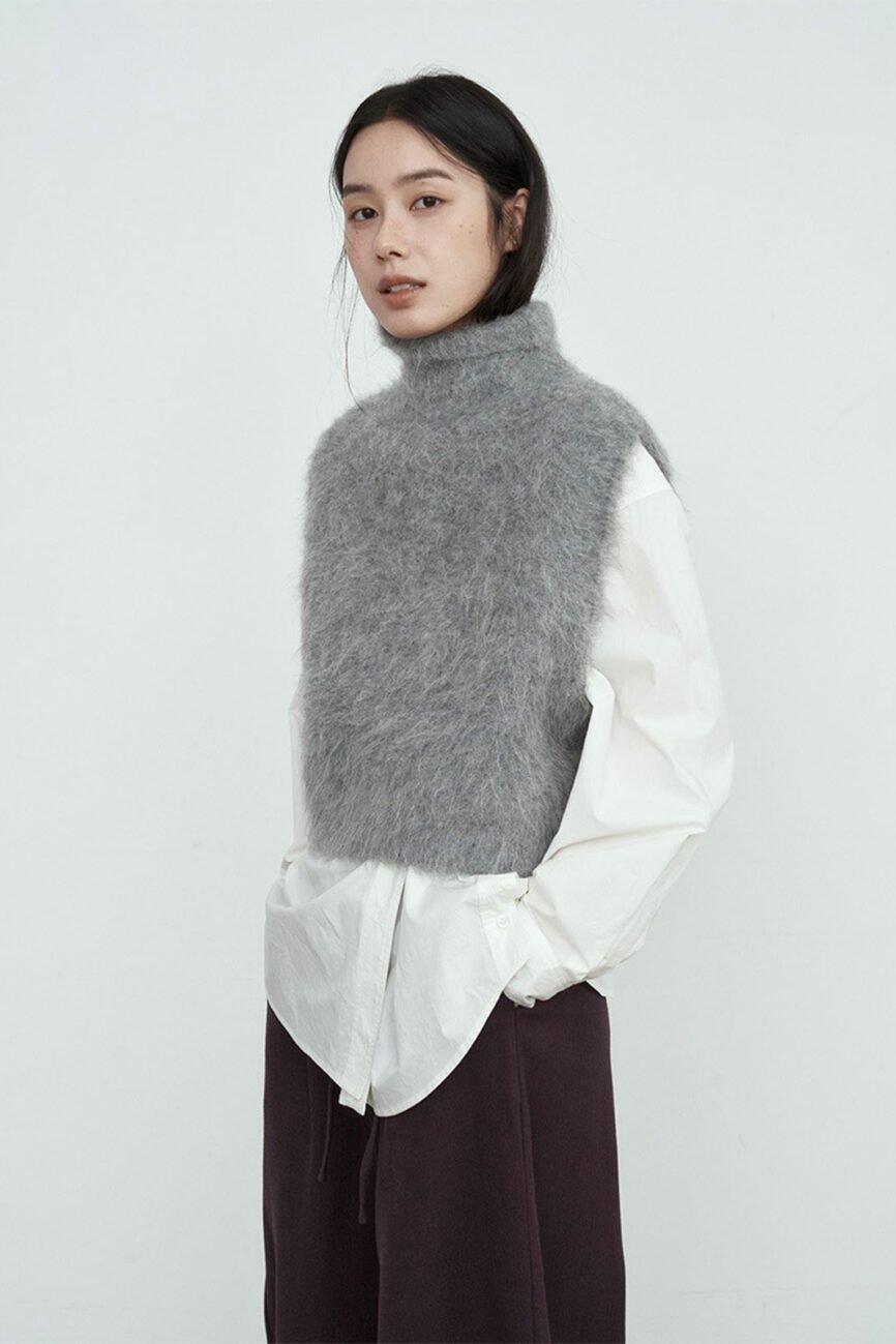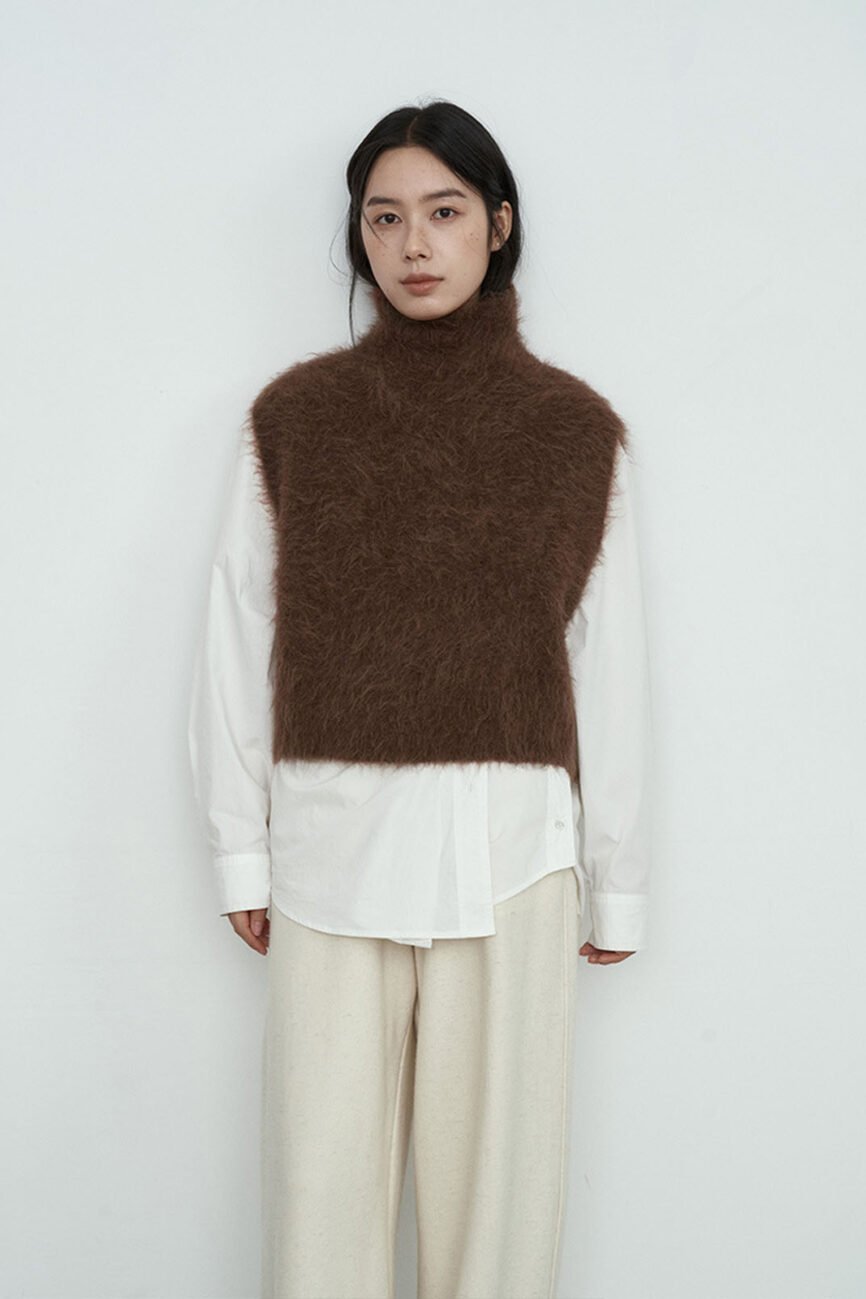 78% Alpaca Wool Turtleneck Knitted Waistcoat 65242