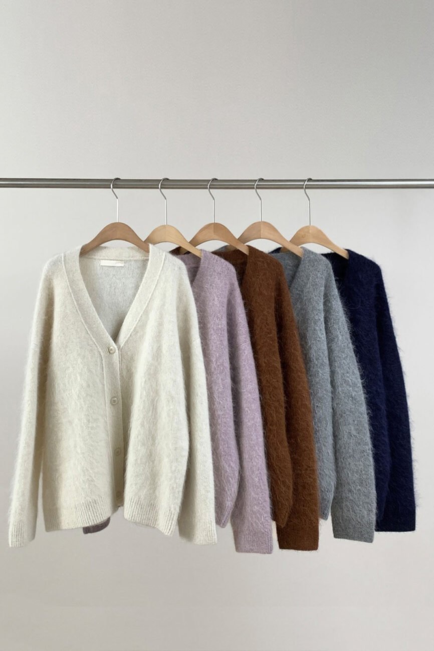 55%Alpaca V-neck Cardigan Sweater With Single-breasted 64980