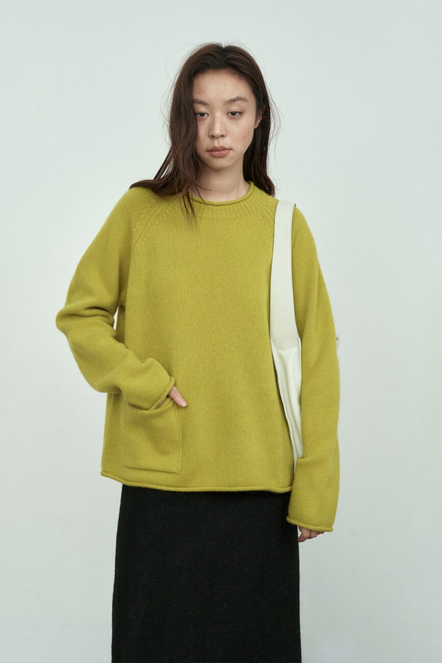 100%Wool Pocket Crew Neck Sweater L4215241284