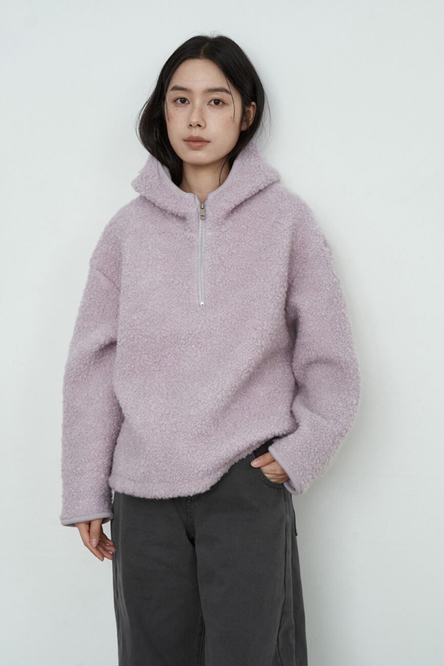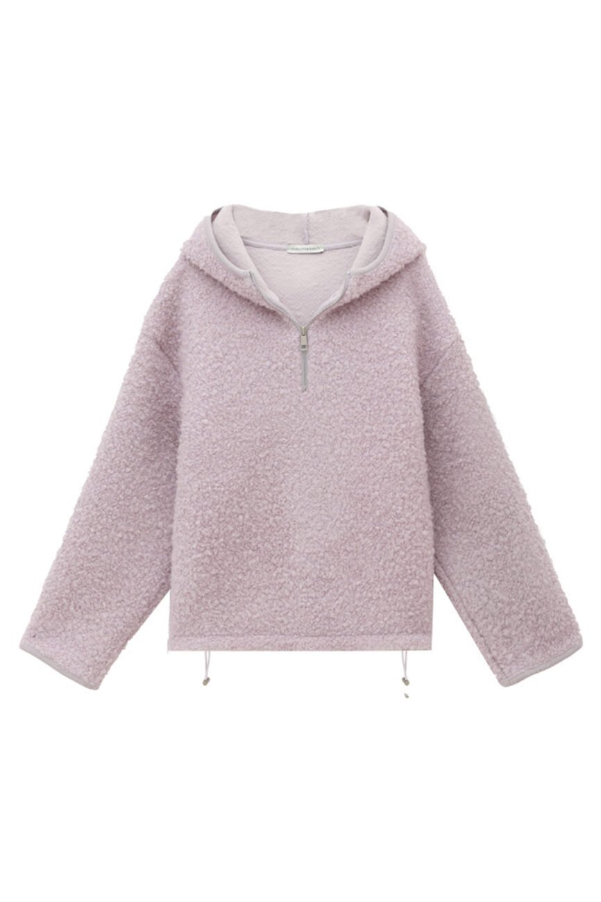 70%Wool Hooded Half Cardigan Sweater 52368